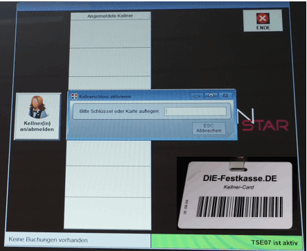 Die Bedienungskasse "old school" hat keine Kassenlade, dafür aber die Kellnerausstattung für beliebig viele Bedienungen (Barcodescanner und